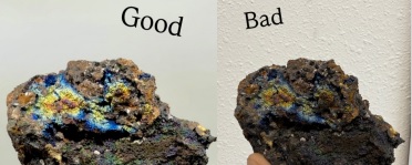 Sue Dekany, PLS Secretary, had been working toward entering a competitive case in late 2024. Then came the Eaton Fire, and Sue’s accumulated work was trashed. Out of the ashes, however, Sue thought the remnants would make an interesting educational display. Boy, was she right! Over Mother’s Day weekend she set up her Novice-Educational-General Concept-General Audience display showing her rocks that had been cooked in the Eaton Fire, submitted the case competitively in the Novice category of the CFMS show and the result: a Double Win with ‘Best of Show’ and the ‘President’s Award’. (Sue’s exhibit will be on display again September 20-21 at our annual show in Arcadia.) Sue’s observations from her rock collection debris: many rocks were massively oxidized (pyrite, some jaspers, onyx and serpentine), every bit of metal lost its protective polish, obsidian fractured in a spiral, but otherwise looked normal, quartz crystals and fluorite turned white and brittle, and amazingly an apatite cabochon survived, looking the same as before the fire.